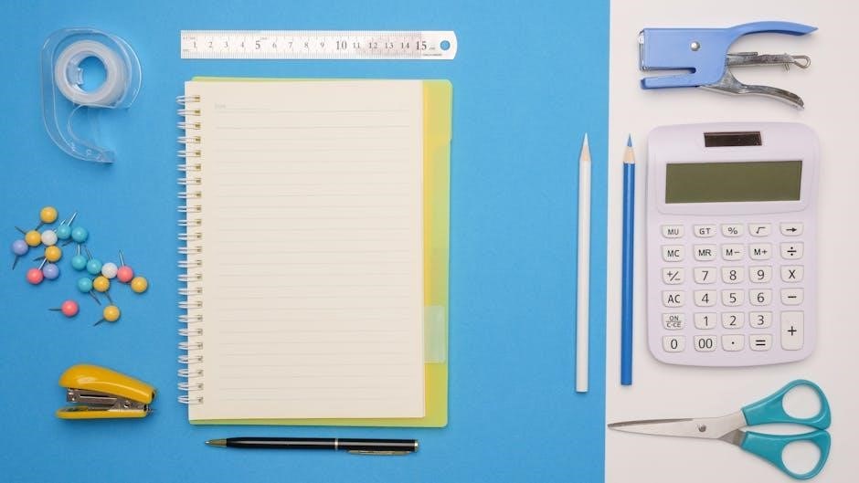 The textbook covers essential topics, and supplemental materials, such as the “Everything You Need to Ace Pre-Algebra and Algebra 1 in One Big Fat Notebook”, can further enhance learning. It’s a key resource for mastering pre-algebra skills.